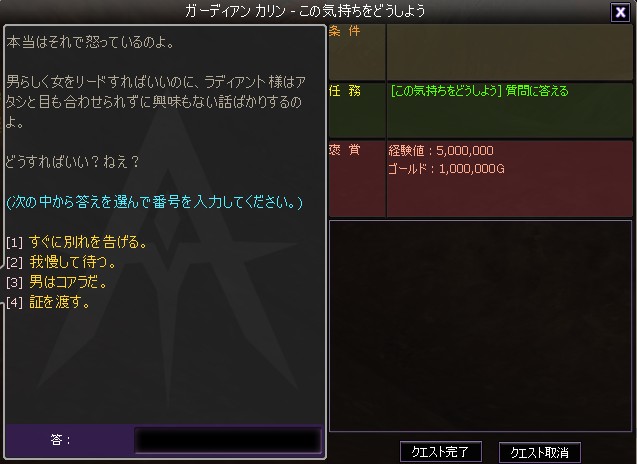 なんとも、ひとつのクエストでこんなにも楽しめるなんて~^^;ラディアント、がんばれ~!