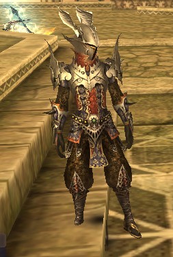女性版でもそうだったのですが、兜をつけると凛々しい顔が全部隠れちゃうんですね^^;残念ですね~色目的には落ち着いた色目で、男性の特徴ですけど、肌の露出がまったく無いですね~両肩と兜についている羽?がアピールポイントなんでしょうかね~^^