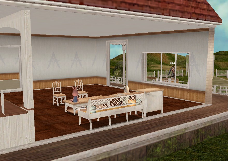 外から見ると壁が透けて丸見えなんですよね~^^新しき購入したソファーに座ってくつろいでいるところです^^