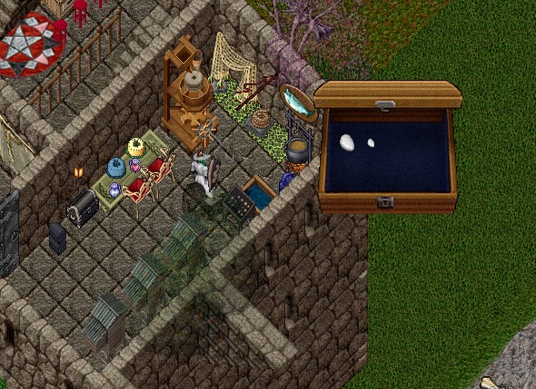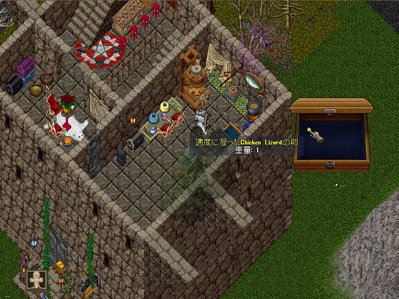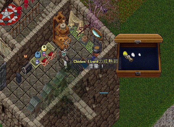 じゃあ、このニワトリたち、つかまえてどうすんの?ってことなんですが、お気に入りになって、ニワトリ小屋に入れると、卵を産むそうです。その卵を孵化器にいれて面倒を見るとまた、ニワトリが孵る・・・・つまり、UOの世界をニワトリいっぱいの世界にして、さらには、来るべき新パッケージUOCK(UOチキン)の前章にするというころらしいです~~