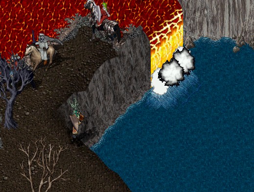 湖に流れ落ちる溶、エグゾダスダンジョンに途中よって行きました。エグゾダスダンジョンではガーゴイルデストロイヤを簡単に撃破^^昔はこいつ結構強かったんだけど、今の戦士たちには余裕のようです。次々となぎ倒しでした。