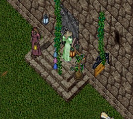 玄関の右側にあるやつなんです。レシピは「ハウジング@UO」さんからゲットして作ってみました。このランタンは普通のランタンじゃないんですよ~~^^ロックダウンさせるとぼわ~~~って明るくなったり暗くなったりするんですよ~。このランタンのゲット方法はなんと、物乞いスキルでハートウッドのNPCからもらうんです。物乞いスキルって初めて使ったけど以外に面白いかも・・・^^;スキル遅延8秒あるらしく(パラリ参照)チョットいらいらするし、とてもあげにくいスキルらしいです。このランタンって皆さん持っているのでしょうか~~??
