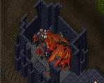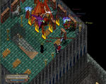 ここはダンジョン入り口・・・強ドラちゃん2匹という強力な布陣!!奥にある棺おけのようなものをダブクリでダンジョンにワープです。画像はないんだけど強力な名前のついた骸骨が鍵を持っているようで、鍵集め・・・うは!!骸骨つよすぎ!!紙に近い防具の私は触られただけで一気に赤色に!!しかも骨メイジもいるし・・メイジ系は非常に苦手です^^;危なくなったらいったん外に(ダンジョン外に)逃げる戦法が有効的かも・・・